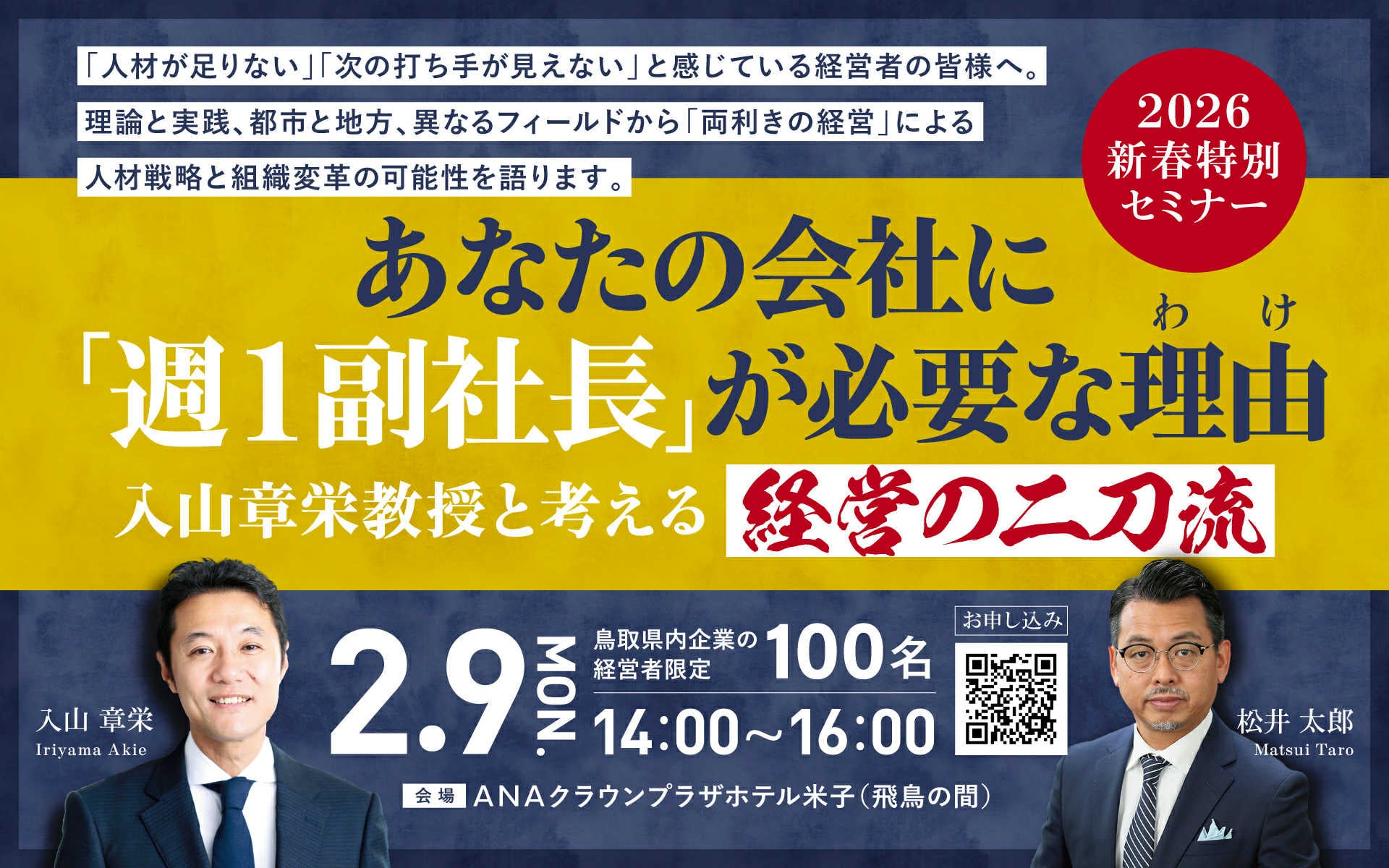 ※「週1副社長」はとっとりプロフェッショナル人材戦略拠点の登録商標です。