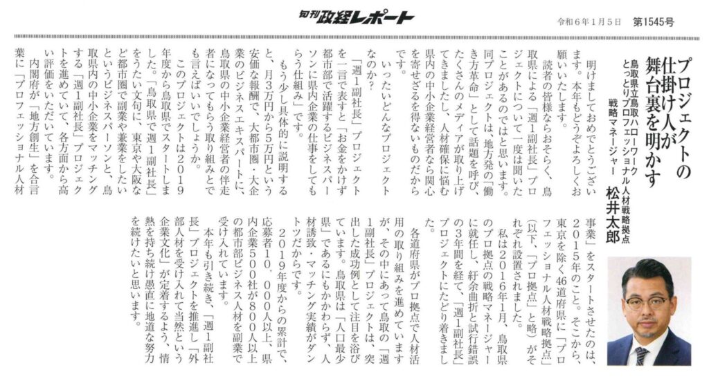 旬刊政経レポート(1/5号)に当拠点の取組みが紹介されました