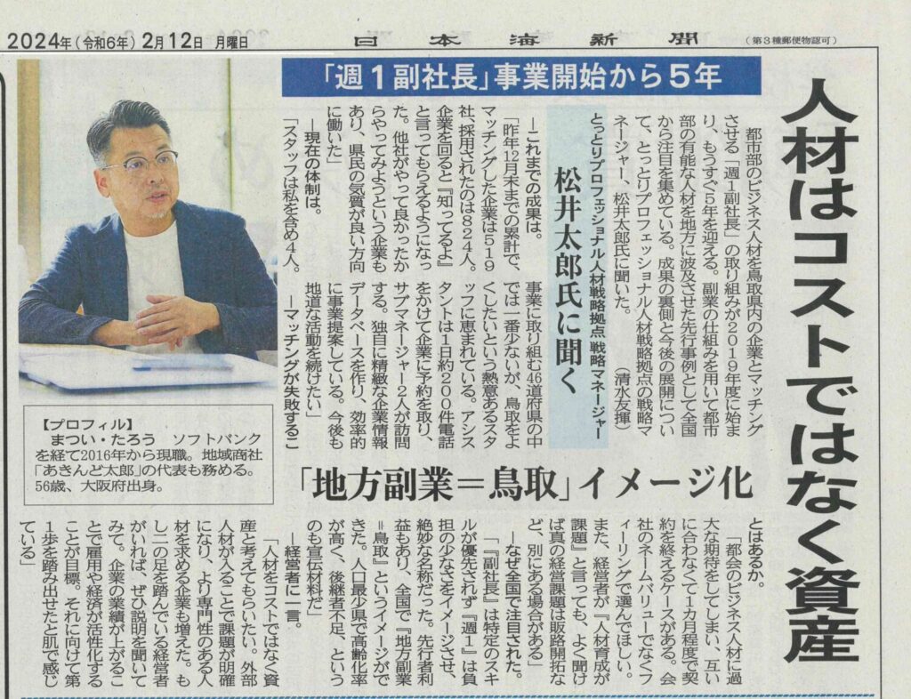 日本海新聞(2/12)に当拠点の取組みが紹介されました